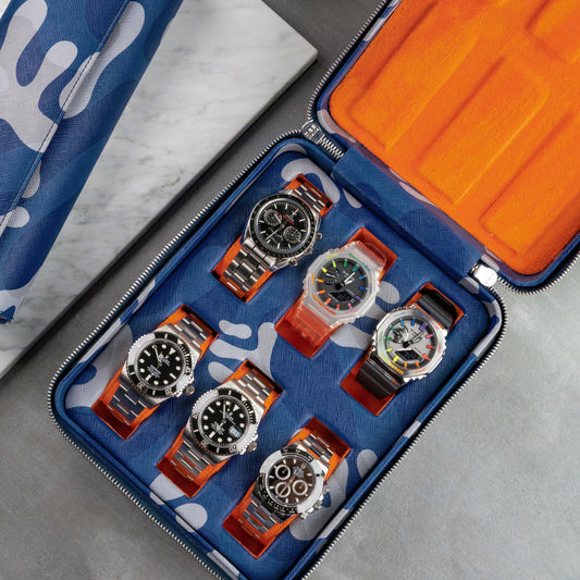 IFLW ウォッチケース 6本用 ブルー迷彩 Blue Camo Watch Case for 6