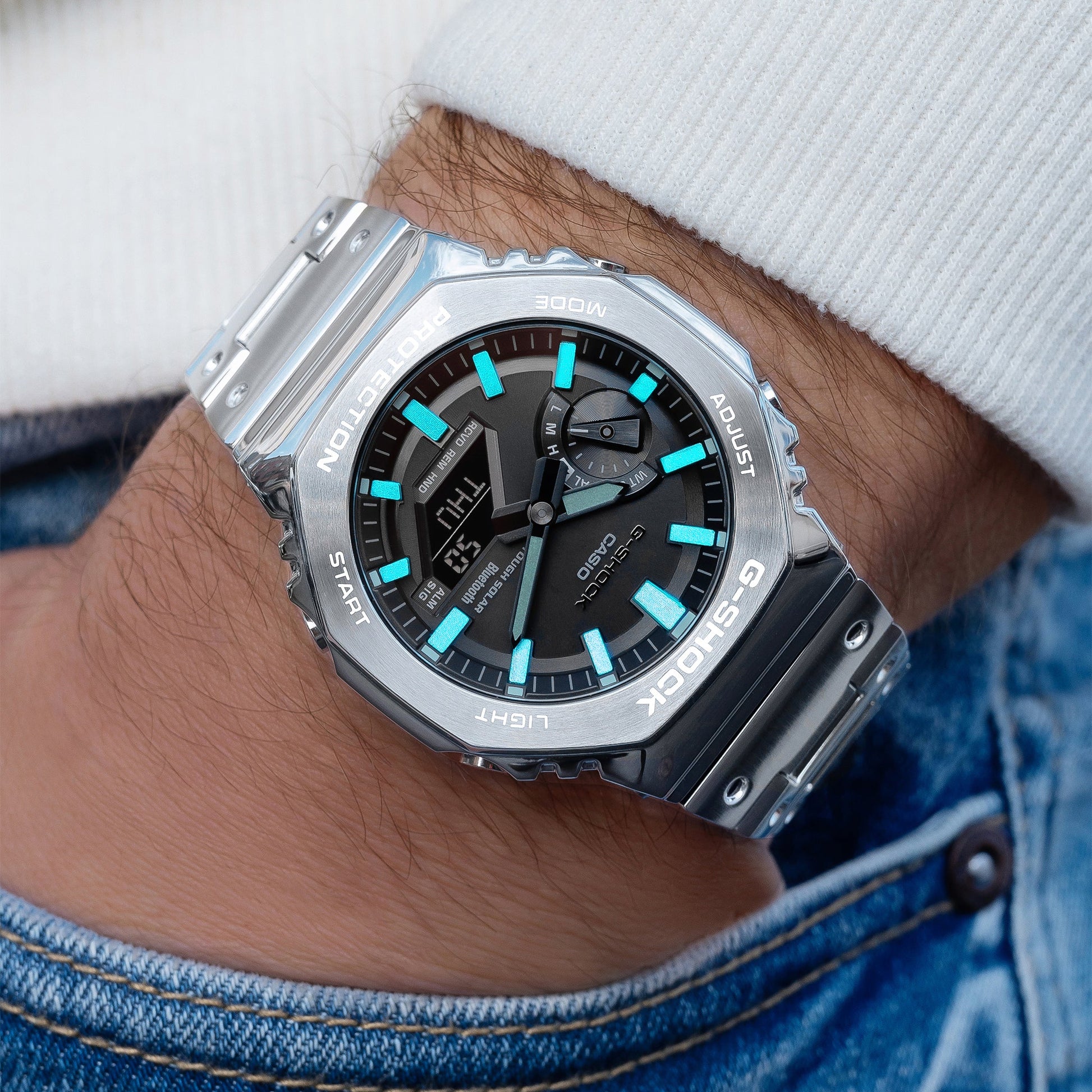 時代を超えて愛されるティファニーブルーを採用し、G-Shockフルメタルモデルと組み合わせたデザイン。